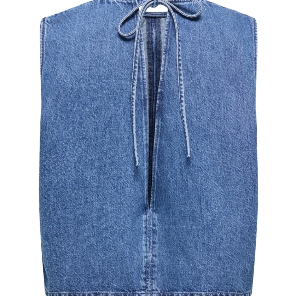 Vildt cool denim top fra Only med en smule åben ryg og bindebånd. Style den med denimjeans i samme vask for et komplet, denim-on-denim look. Brug sneakers eller stiletter til.