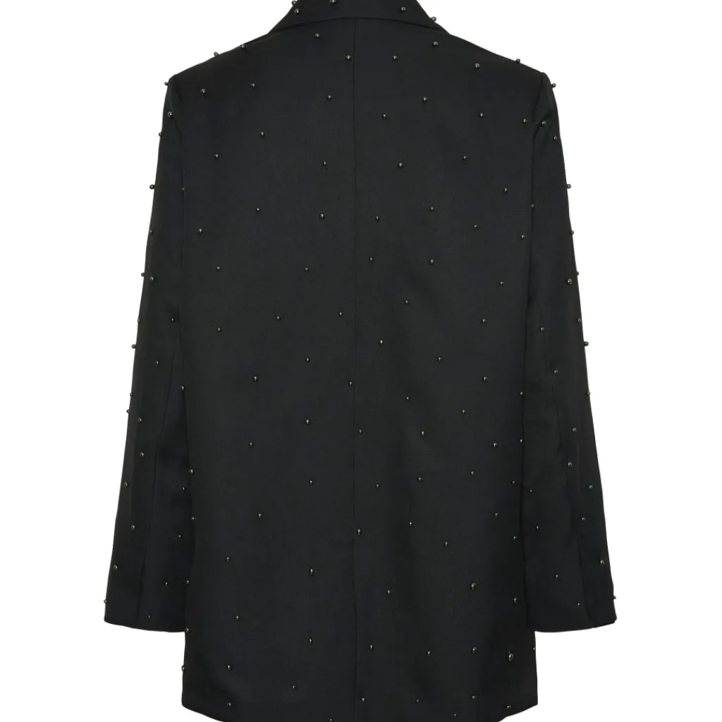Smart blazer med sorte perler fra Pieces. Blazeren er super festlig og kan styles med bukserne fra samme serie for et komplet, cool look.