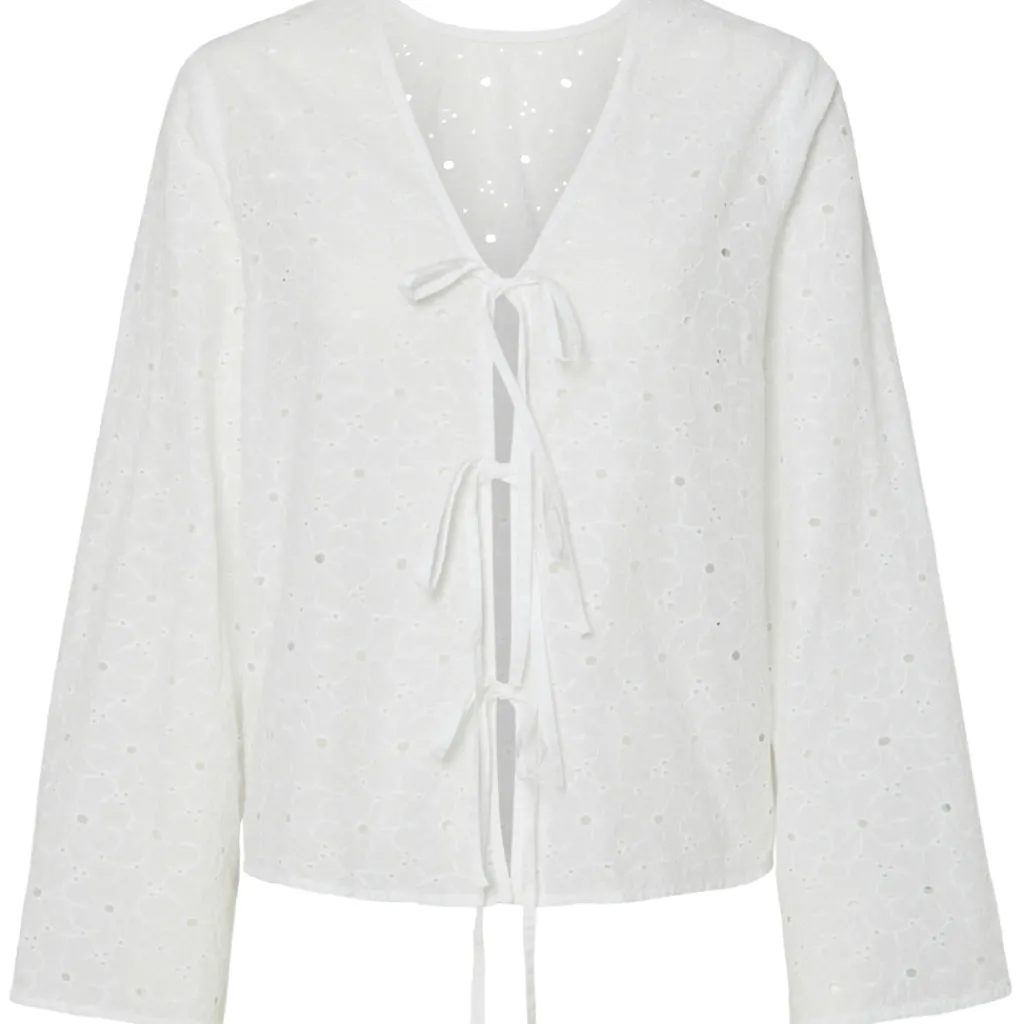 Den smukkeste bluse med bindebånd fra Pieces. Brug den for sig selv eller med en basis top under for ekstra komfort. Style den med en nederdel og et par ballerinaer for et fint look.