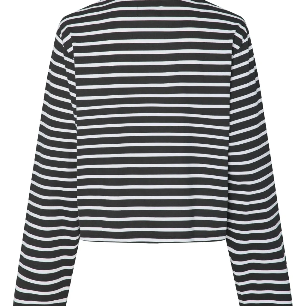 Sød stribet bluse med skulderpuder fra Pieces. Ideel til hverdagsbrug og er super let at style med et par jeans eller habitbukser.
