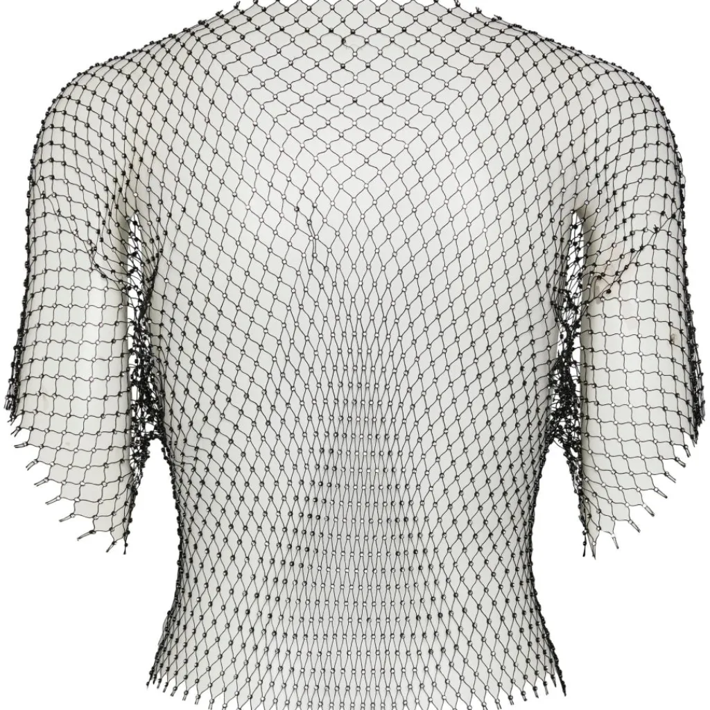 Fin net bluse med sten fra PIECES. Perfekt at style med en top under.