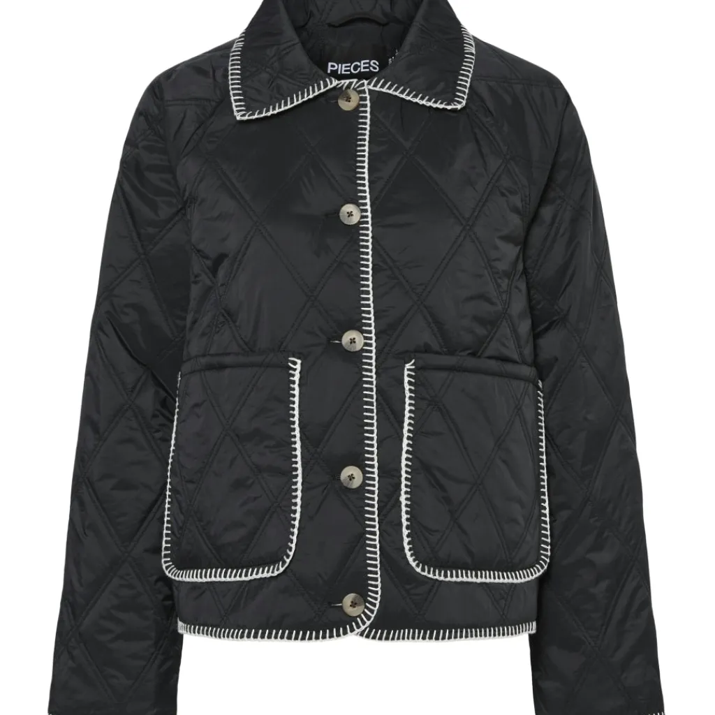 Smuk quiltet jakke fra Pieces med store lommer. Jakken har kontrastfarvede syninger, hvilket giver et super cool look. Brug den evt. som overgangsjakke i foråret og efteråret.