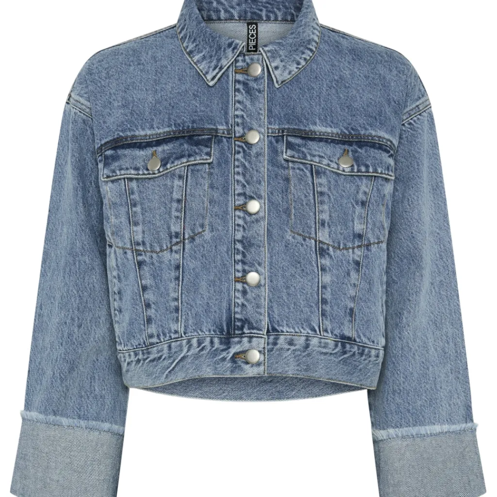 Sej denimjakke fra Pieces med opsmøg. Jakken kan styles med jeansen fra samme serie.