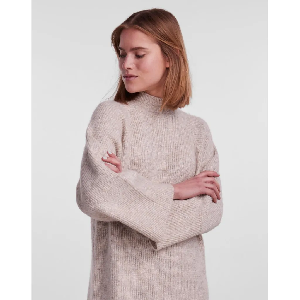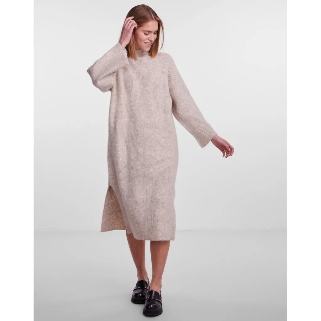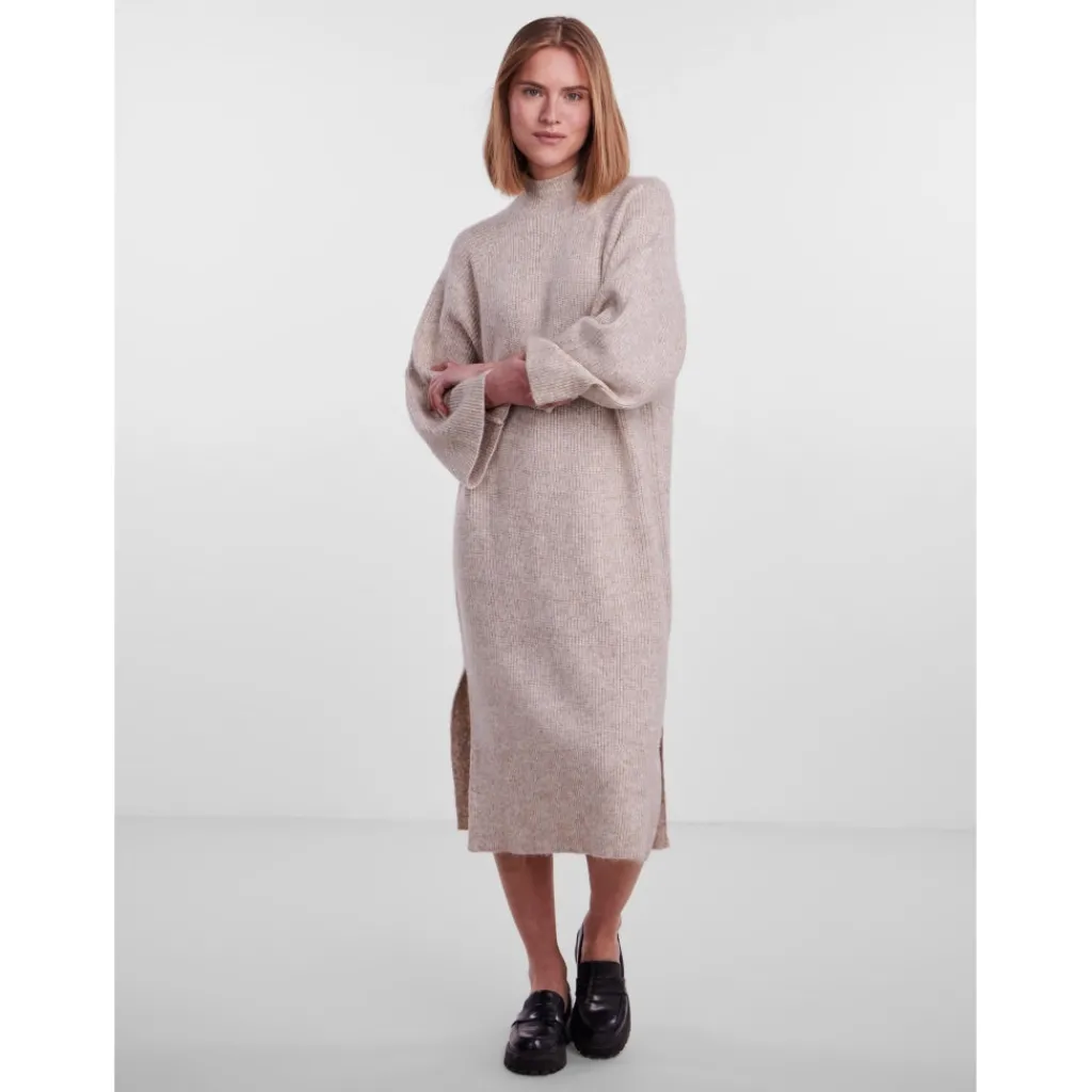 Lækker strikkjole med vidde ærmer og slids i siderne.
