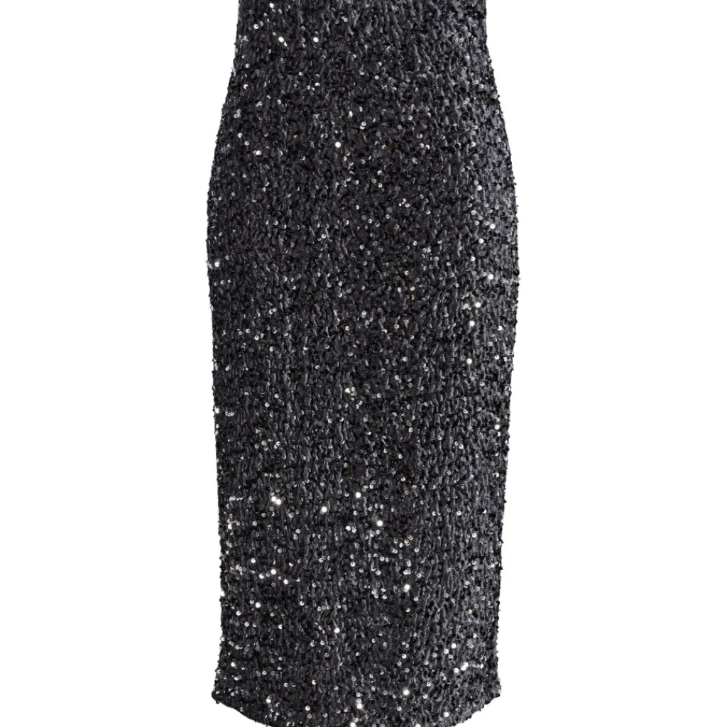 Smuk pailletnederdel med slids fra Pieces. Nederdelen kan styles med top fra samme serie for et komplet glitterlook.