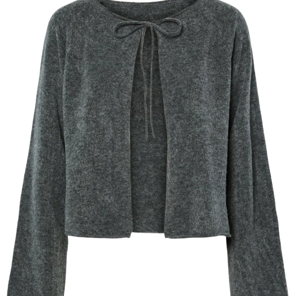 Fin og enkel strikcardigan med fin sløjfe detalje ved halsen.