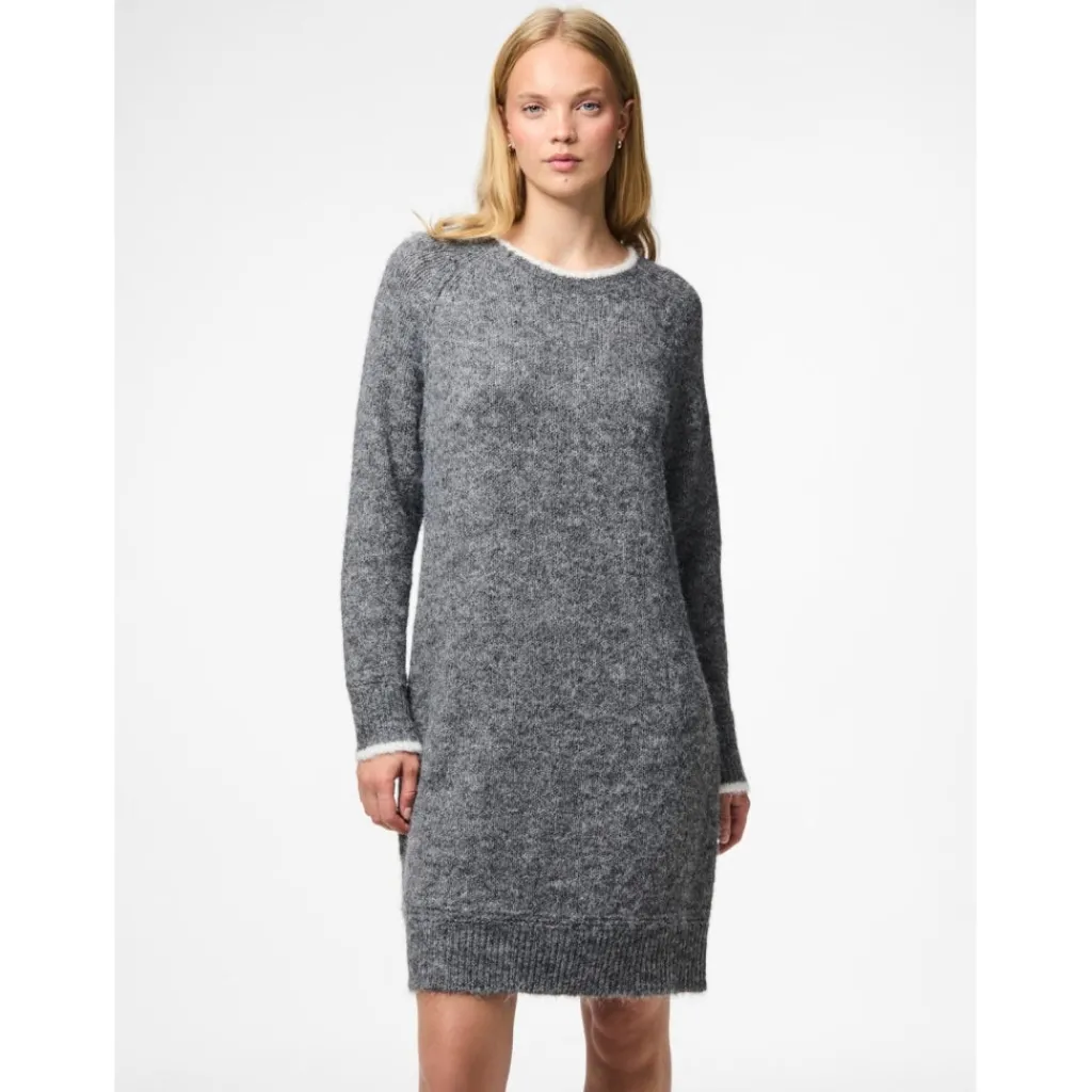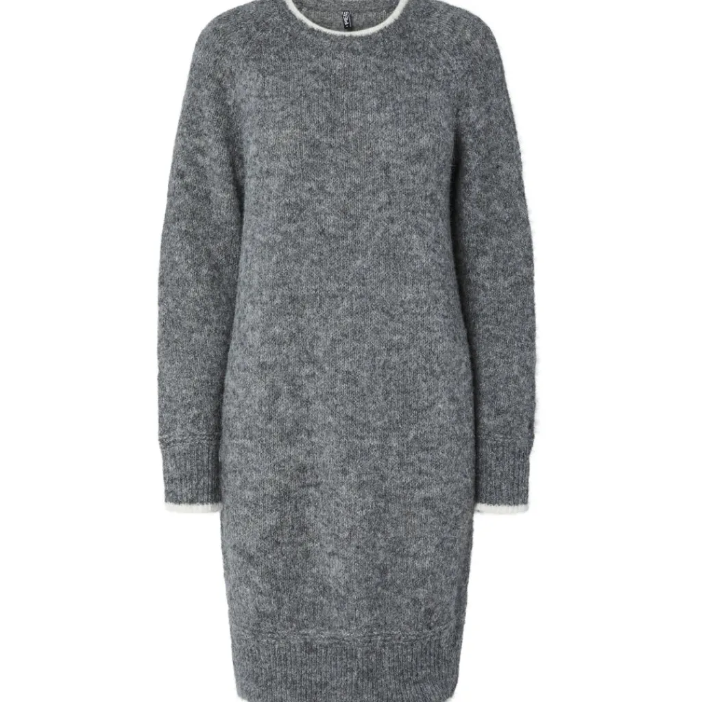 Strikket kjole med rund hals og lange ærmer med faldene skuldre. Regular fit og korte længde, perfekt til afslappede hverdagslooks.