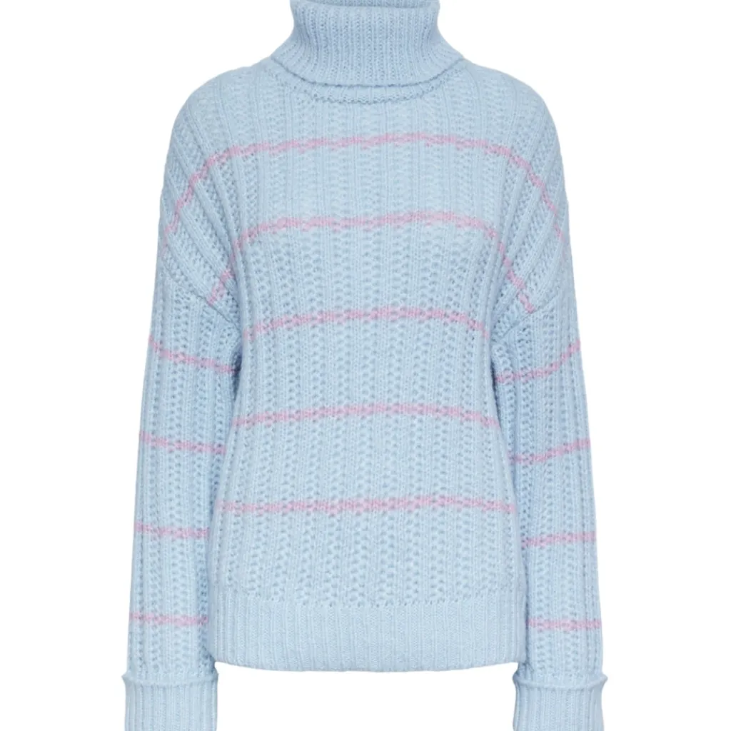 Strik med rullekrave og lange ærmer med vidde. Style med et par jeans og støvler for at få et smart hverdags look.