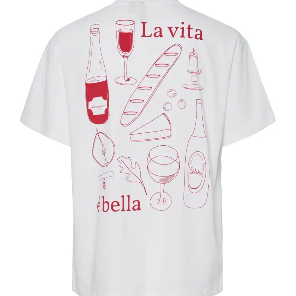Sej t-shirt fra Pieces med print på ryggen. Super klassisk og alsidig – brug den til både jeans og nederdele.