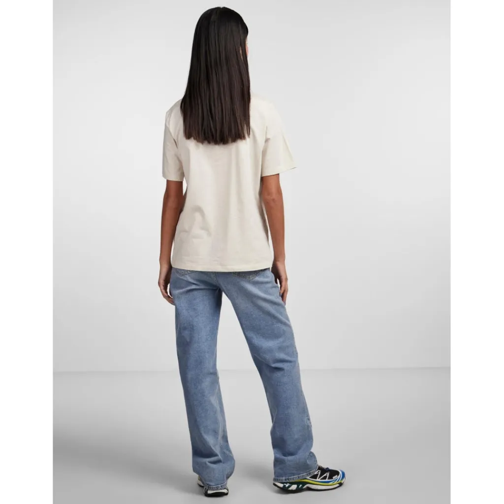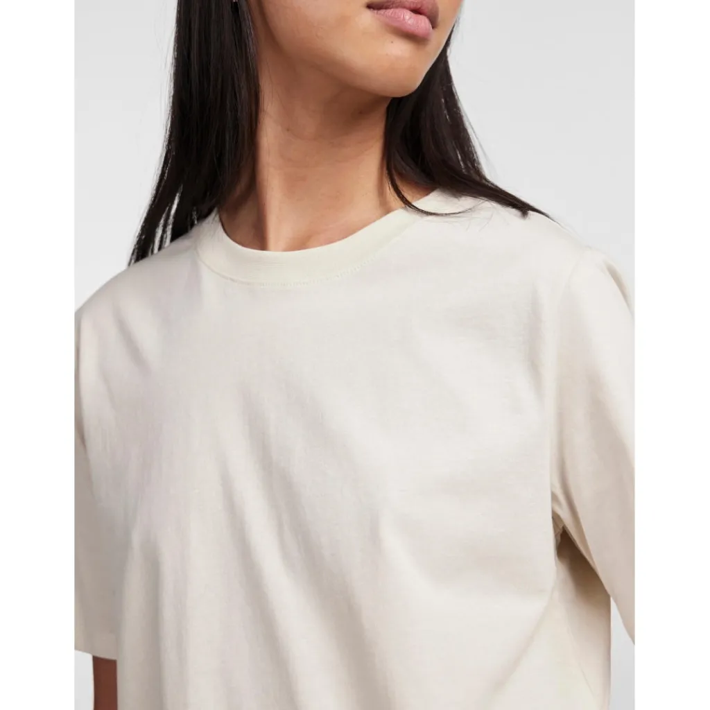 Basic t-shirt fra Pieces i en dejlig blød bomuldskvalitet, der sikrer både komfort og stil hele dagen.