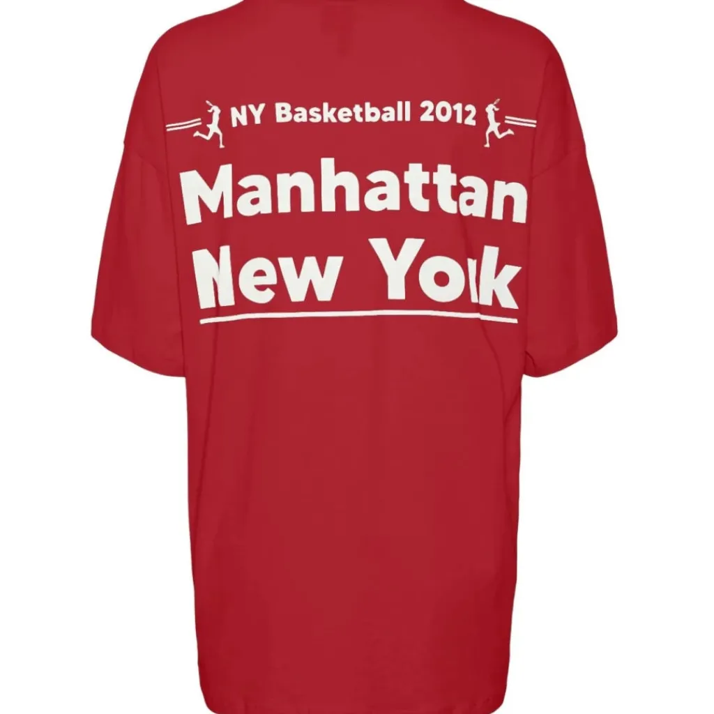Lækker, blød oversize t-shirt fra Pieces med bryst- og rygprint. Kan sammensættes med et par jeans og sneakers for et fint hverdagsoutfit.