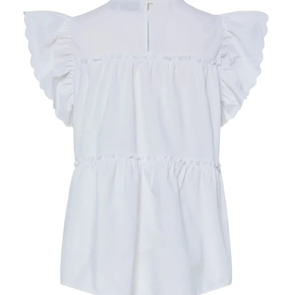 Fineste top fra Pieces med flæsedetaljer på ærmerne. Style til hverdag med et par jeans eller med en nederdel til de solrige sommeraftener.