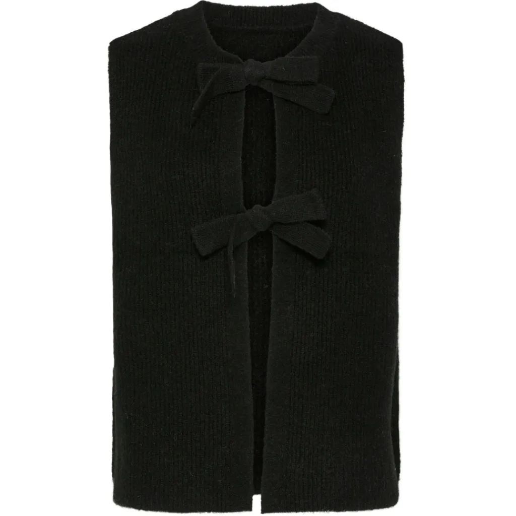 Den smukkeste vest med sløjfer fra Pieces. Kan styles med en basis t-shirt eller langærmet under for et komplet lag-på-lag outfit. Super feminin og alsidig.