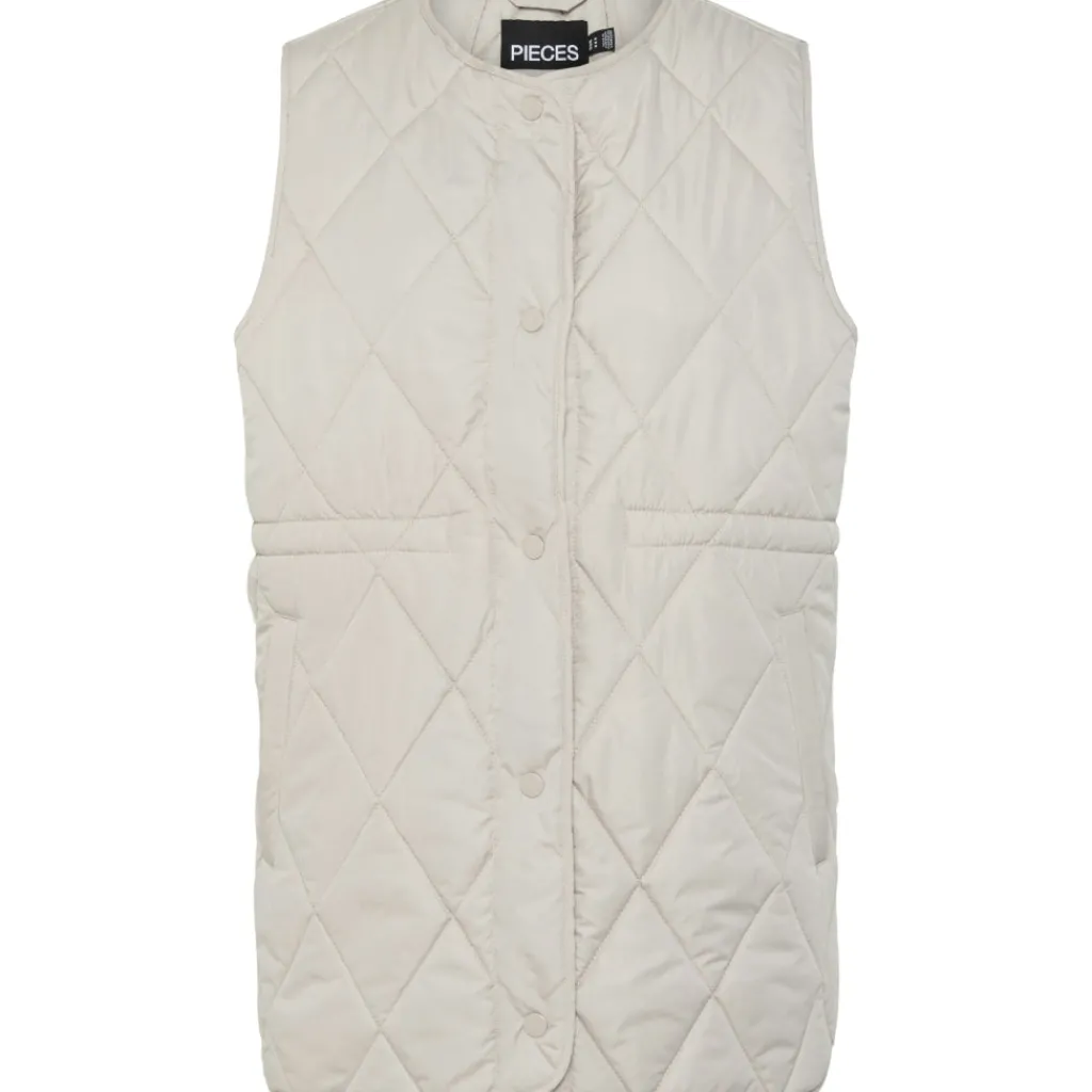 Smart quiltet vest fra Pieces. Vesten har knapper langs fronten og er ideel over en langærmet t-shirt. Tidløs og elegant.