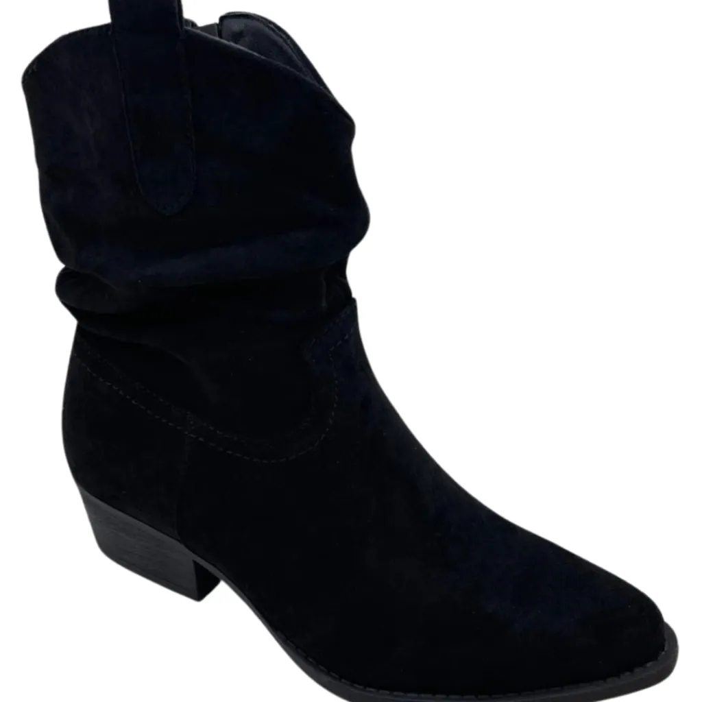 Elegant kort støvle med lynlås på indersiden, samt rynke detaljer.