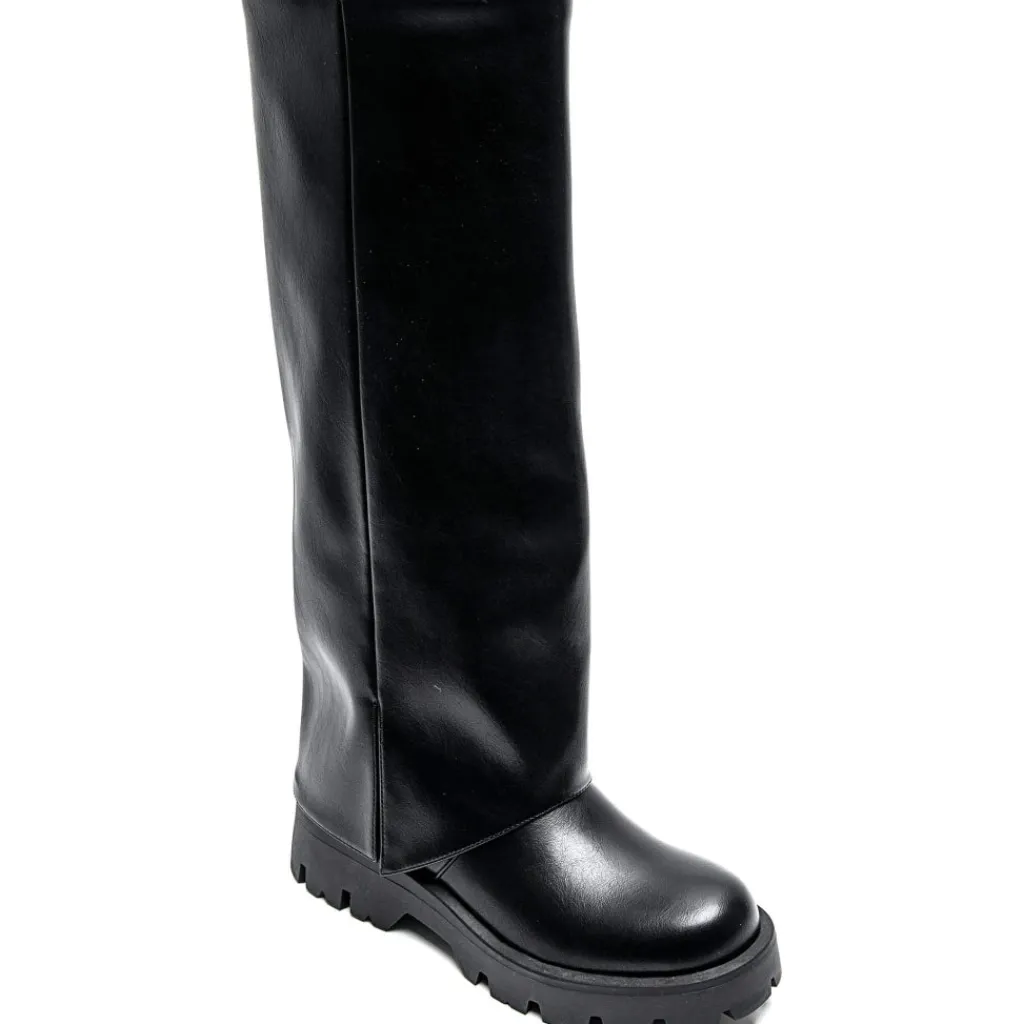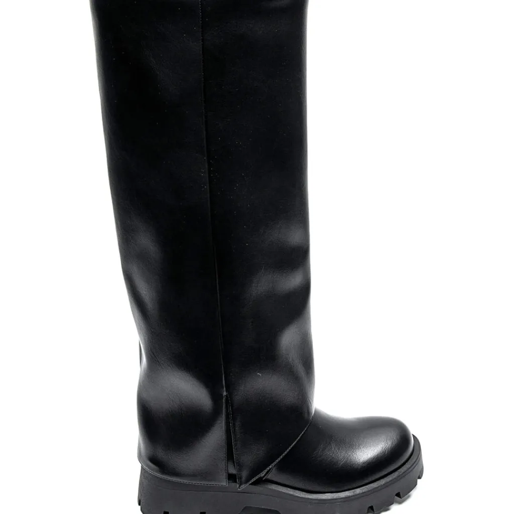 Sejeste støvler i imiteret læder. Støvlen har lynlås i siden og er med dens chunky bund super komfortabel at gå i. For et råt look, style dem med en top, blazer og nederdel.