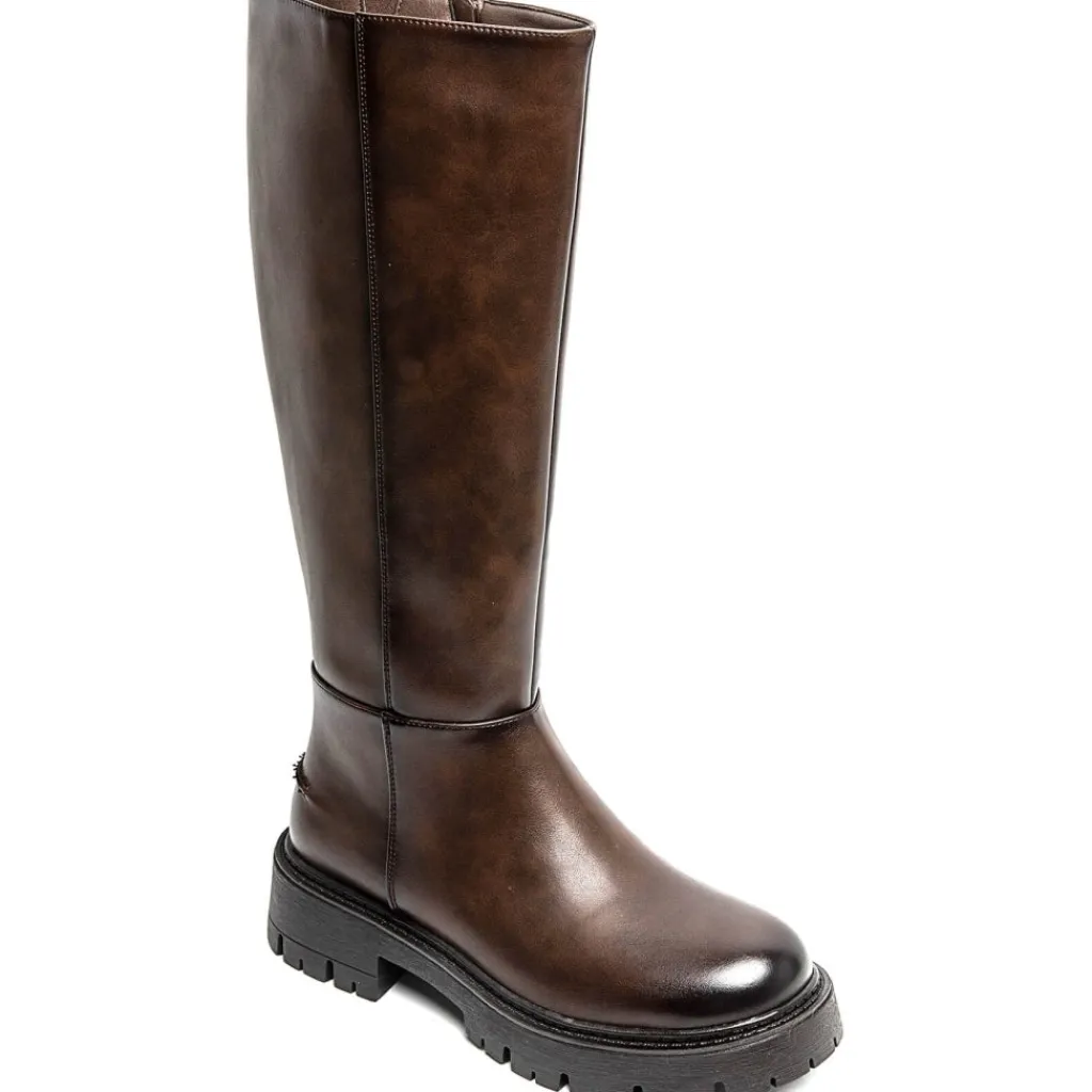 Cool støvle i imiteret skind. Lynlås på indersiden og sej chunky bund. Perfekt til kjole eller nederdel.