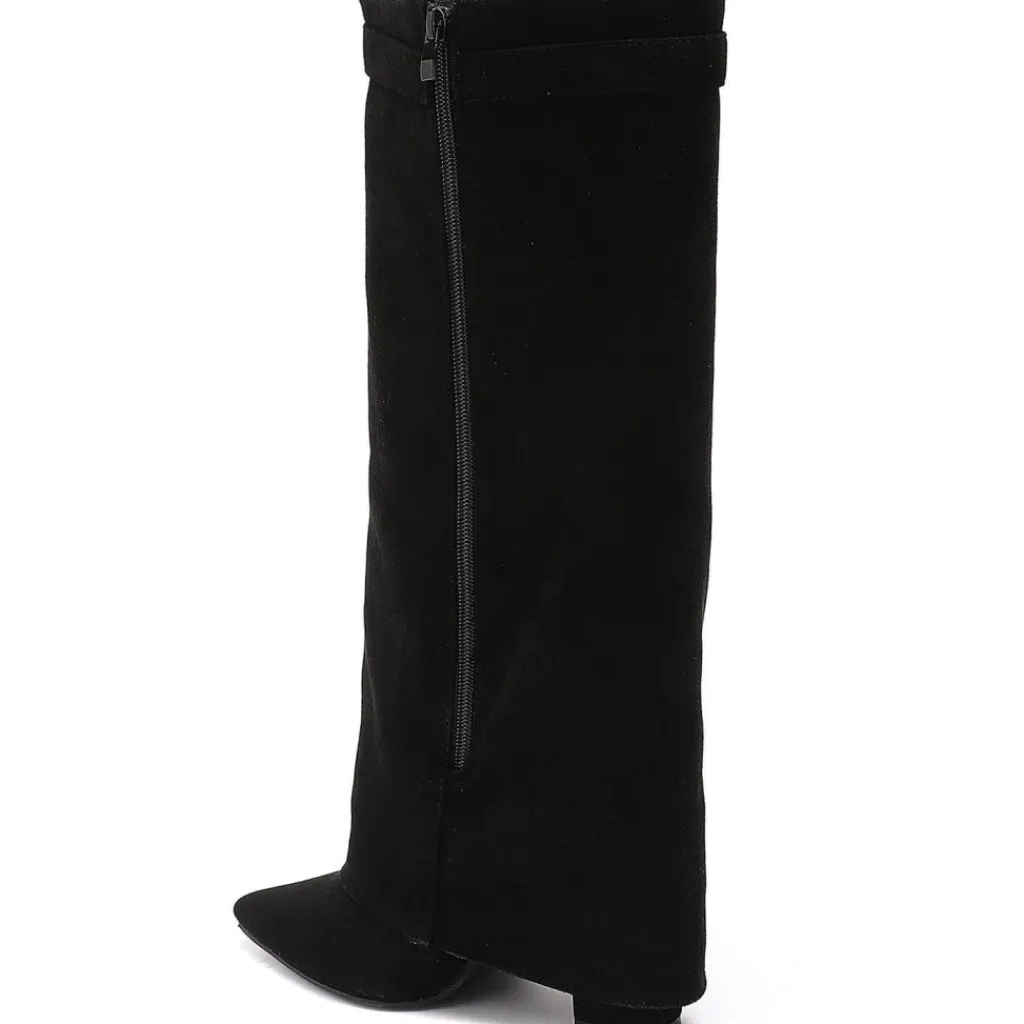 Højhælet støvle med en fin spænde detalje og lynlås på indersiden.