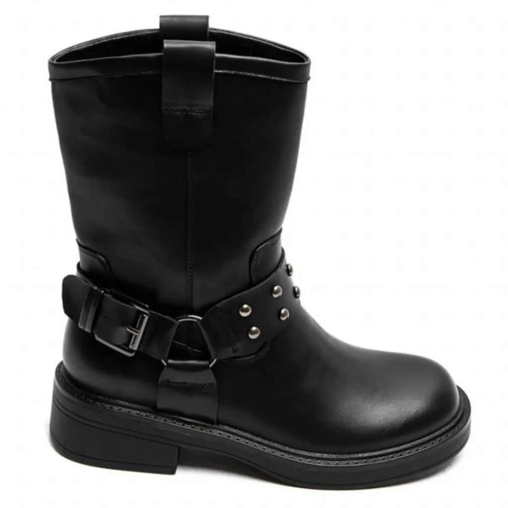 Sej chunky støvle med rå detaljer. Støvlerne har rem omkring anklen med nitter.