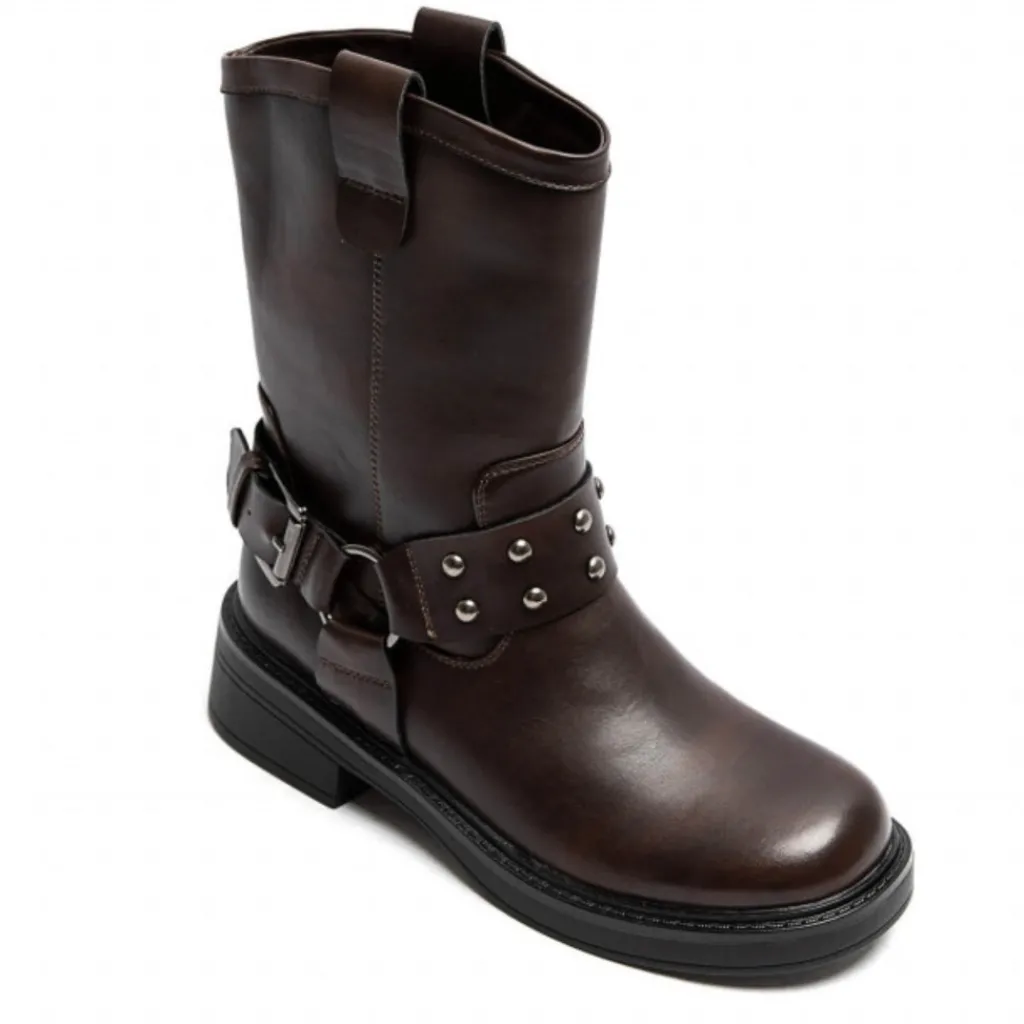 Sej chunky støvle med rå detaljer. Støvlerne har rem omkring anklen med nitter.