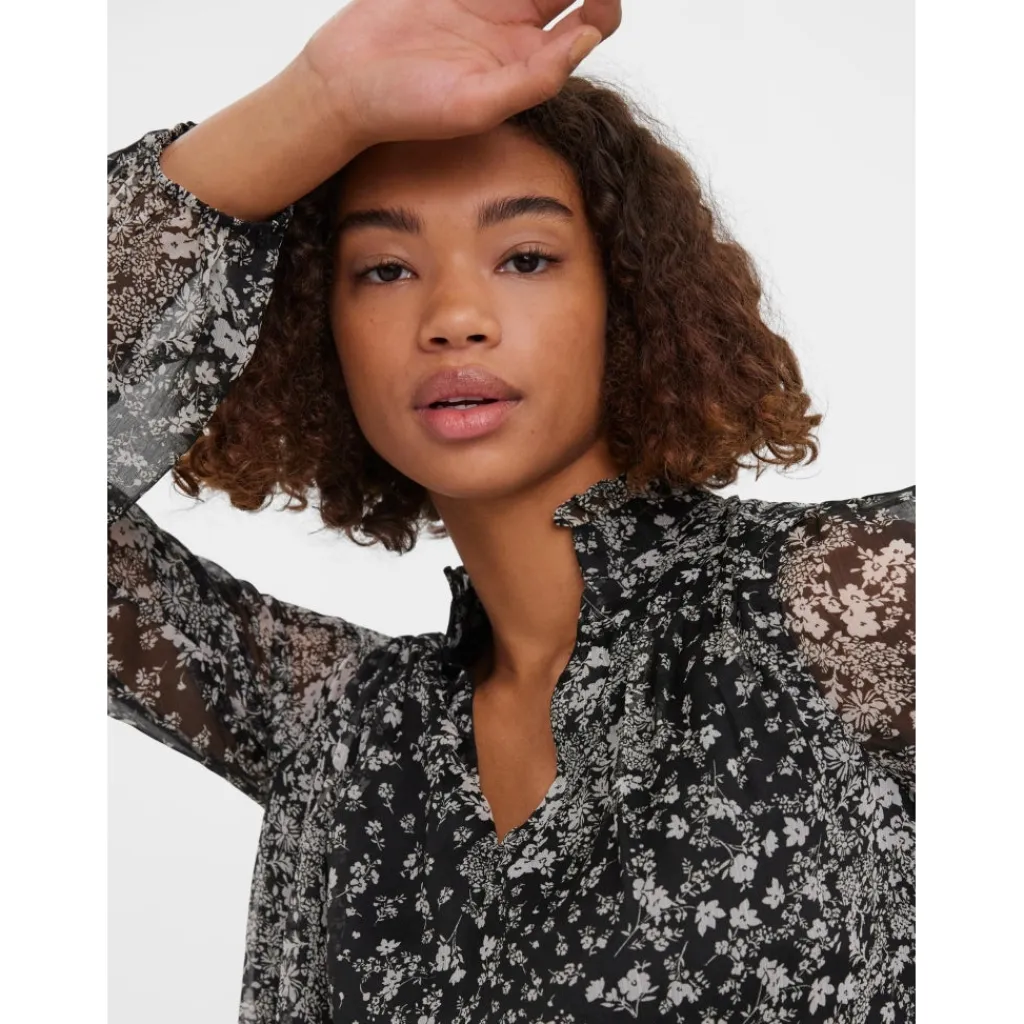 Lækker bluse fra Vero Moda med v-udskæring og flere fine detaljer. Blusen er perfekt til en fødselsdag eller andre arrangementer.