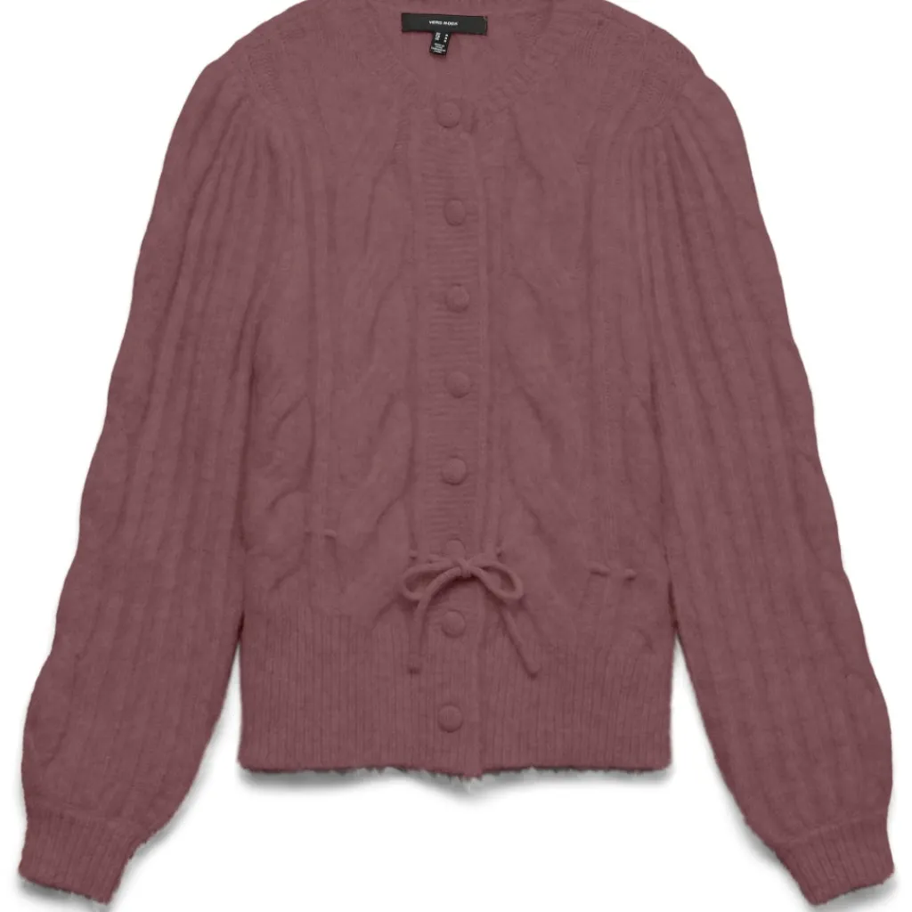 En strikket cardigan med rund hals og ribbede manchetter, der giver et elegant og komfortabelt lag til dit efterårsoutfit. Perfekt til både afslappede og mere formelle looks.