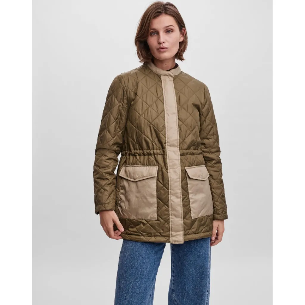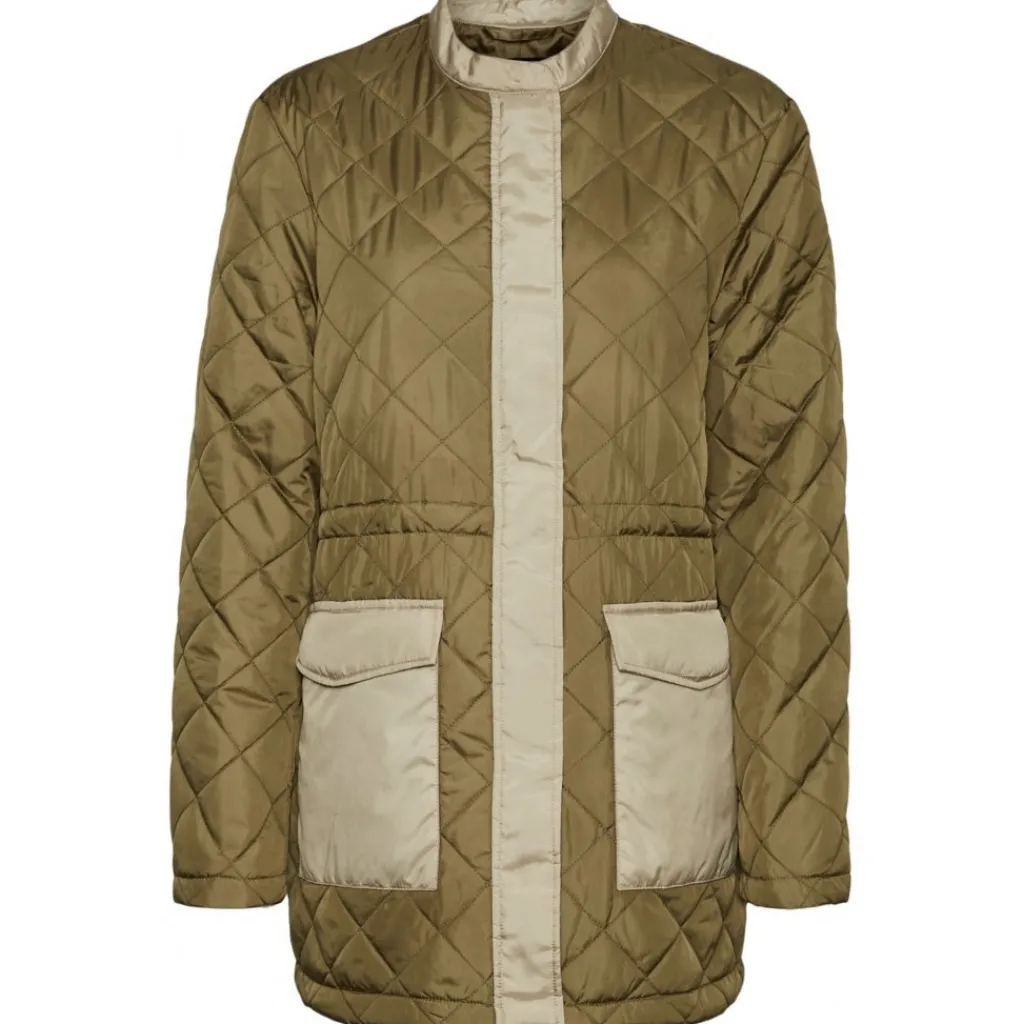 Cool kviltet jakke med kontrast detaljer fra Vero Moda. Jakken har lommer, og indvendig bindebånd, så man kan justere den til i taljen.