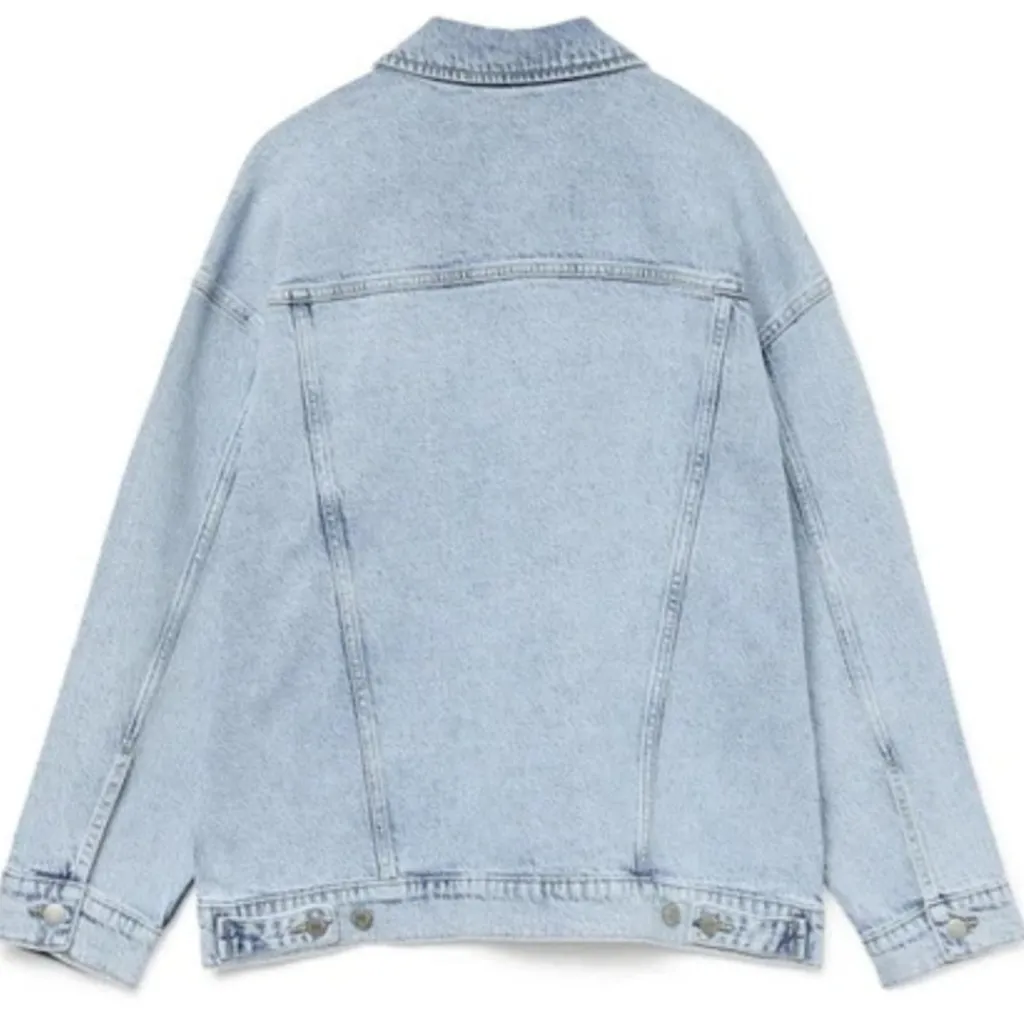 Cool denimjakke i den sejeste vask med krave, brystlommer og knapper langs fronten. Brug den som jakke her til foråret og sommeren, og tilføj jeans eller en nederdel.