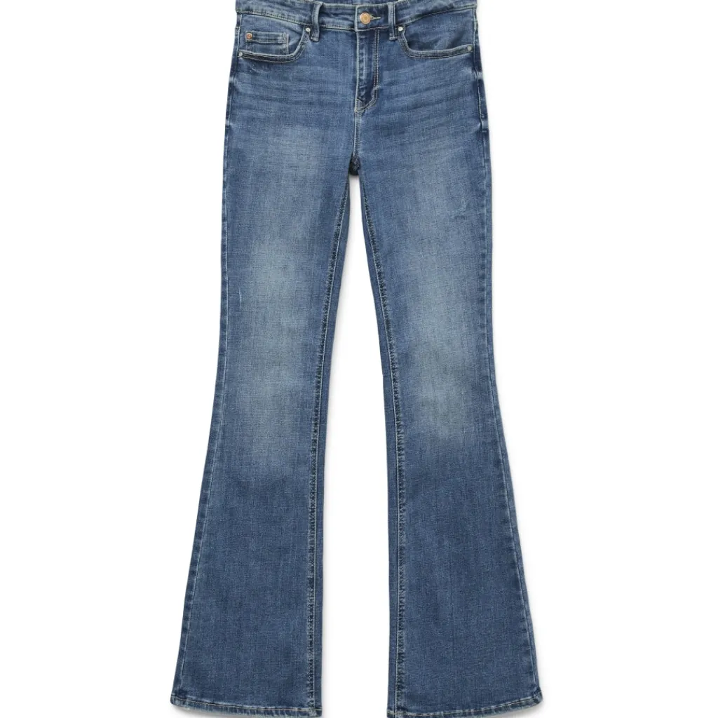 Flare jeans fra Vero Moda. Buksen sidder strammere ved hofte og lår, og bliver bredere fra knæet og ned. Et must-have til hverdagsgarderoben.