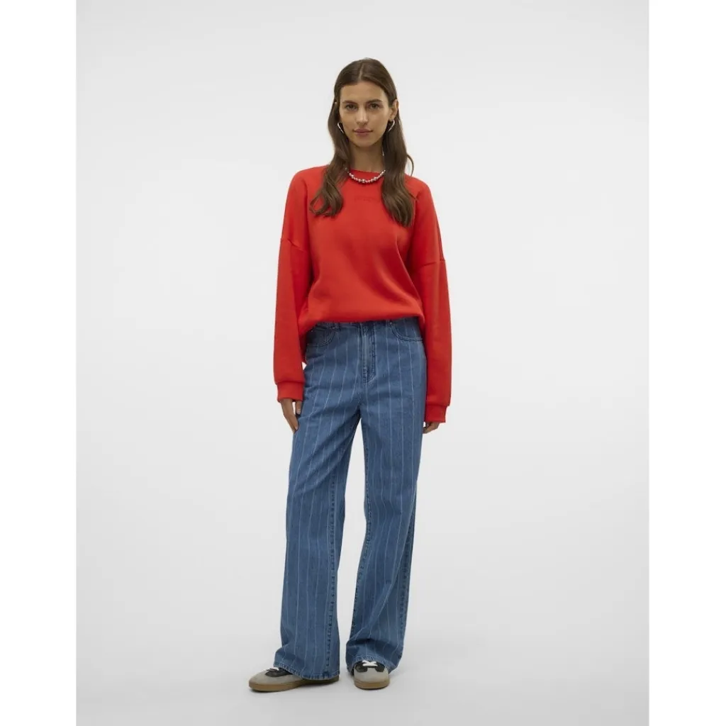 Cool jeans fra Vero Moda med striber. Bukserne har lige ben og høj talje. Style dem med en oversized skjorte og et par støvler for et sofistikeret look.