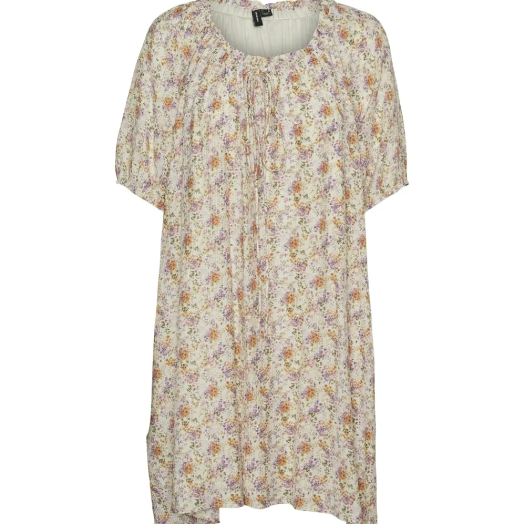 Sød kjole med blomster og bindebånd fra Vero Moda.