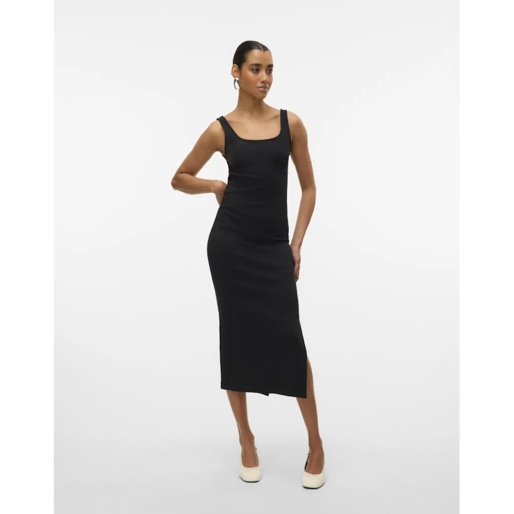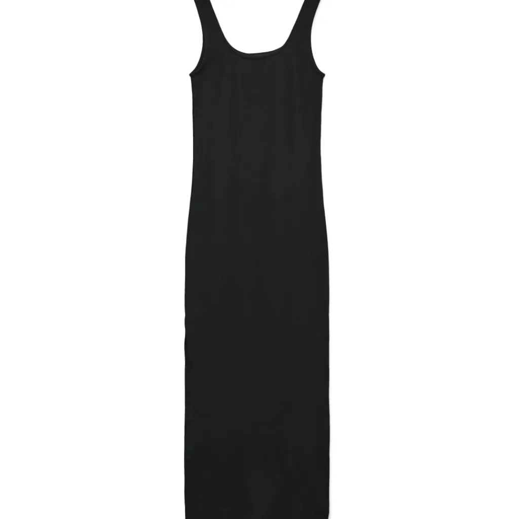 Fin og feminin tætsiddende kjole med det smukkeste slids i siden. Kjolen har lidt tykkere stropper end den klassiske spaghettistropkjole vi kender, en detalje vi er vilde med. Ideel til festlige anledninger med stiletter og smukke accessories.