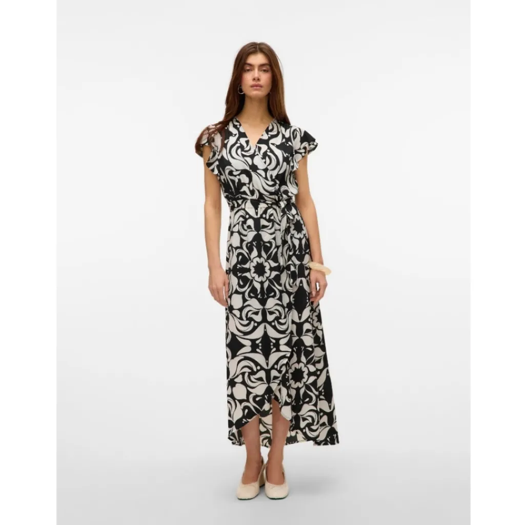 Smuk maxi-kjole fra Vero Moda med fine detaljer. Kjolen har flæseærmer og v-hals samt justerbart taljebånd der fremhæver din figur. Den er fremstillet i et let, lækkert stof og er perfekt til både hverdag og finere anledninger.