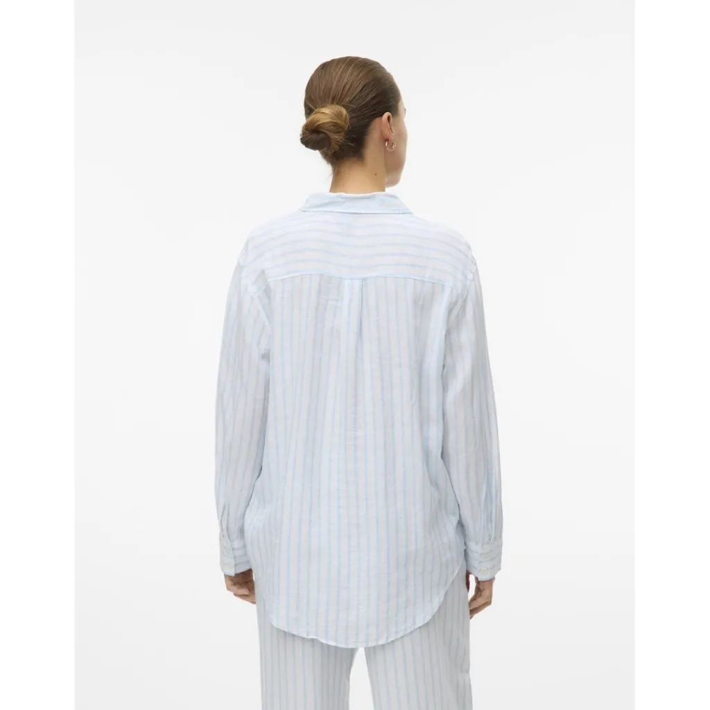 Klassisk skjorte i hørblanding fra Vero Moda. Den har en klassisk krave og knapper langs fronten, og er super nem at style til hvad som helst i klædeskabet. Fin og komfortabel på samme tid.