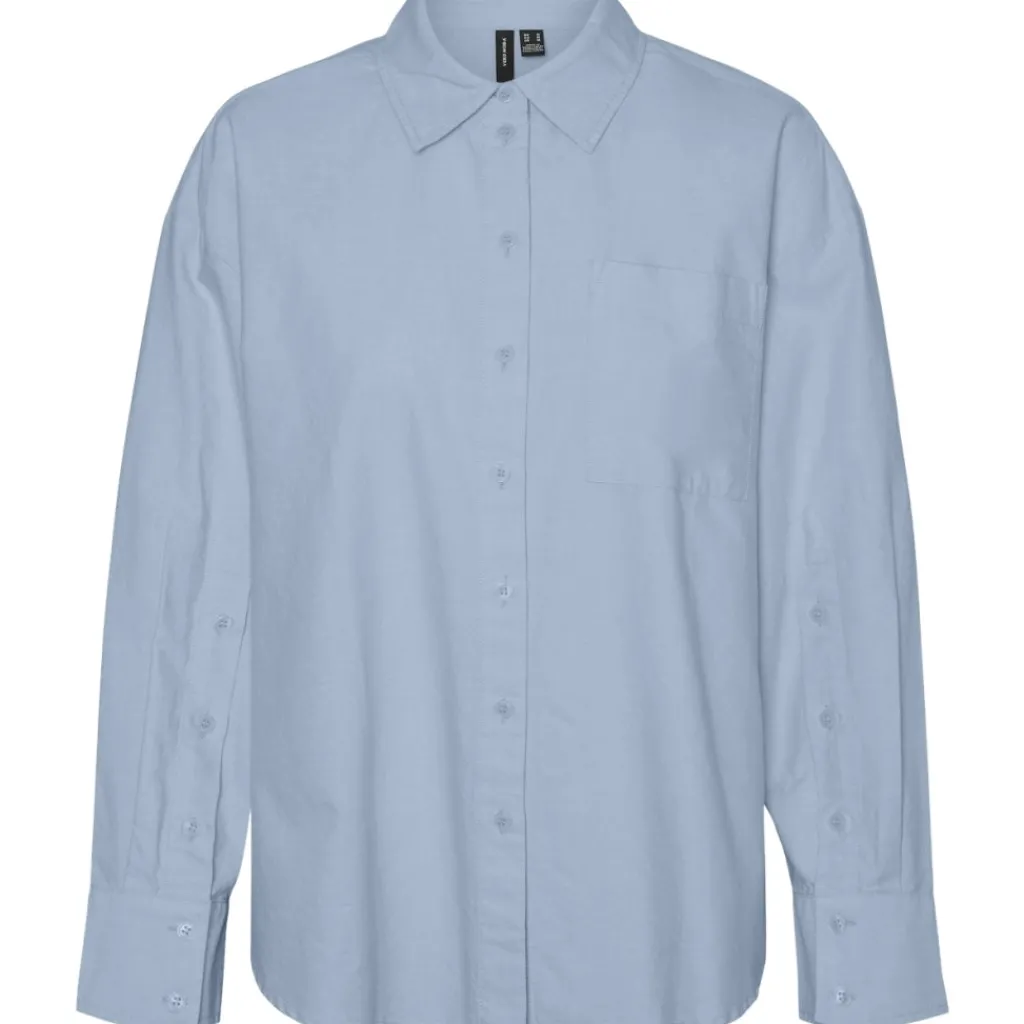 Klassisk blå skjorte fra Vero Moda med brystlomme og knapper langs fronten. Super alsidig og nem at style med et par jeans og sneakers.