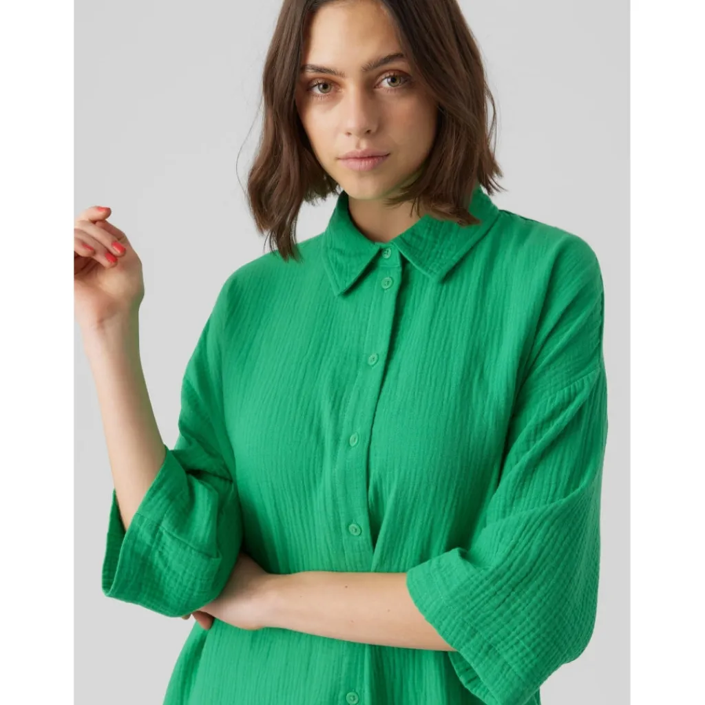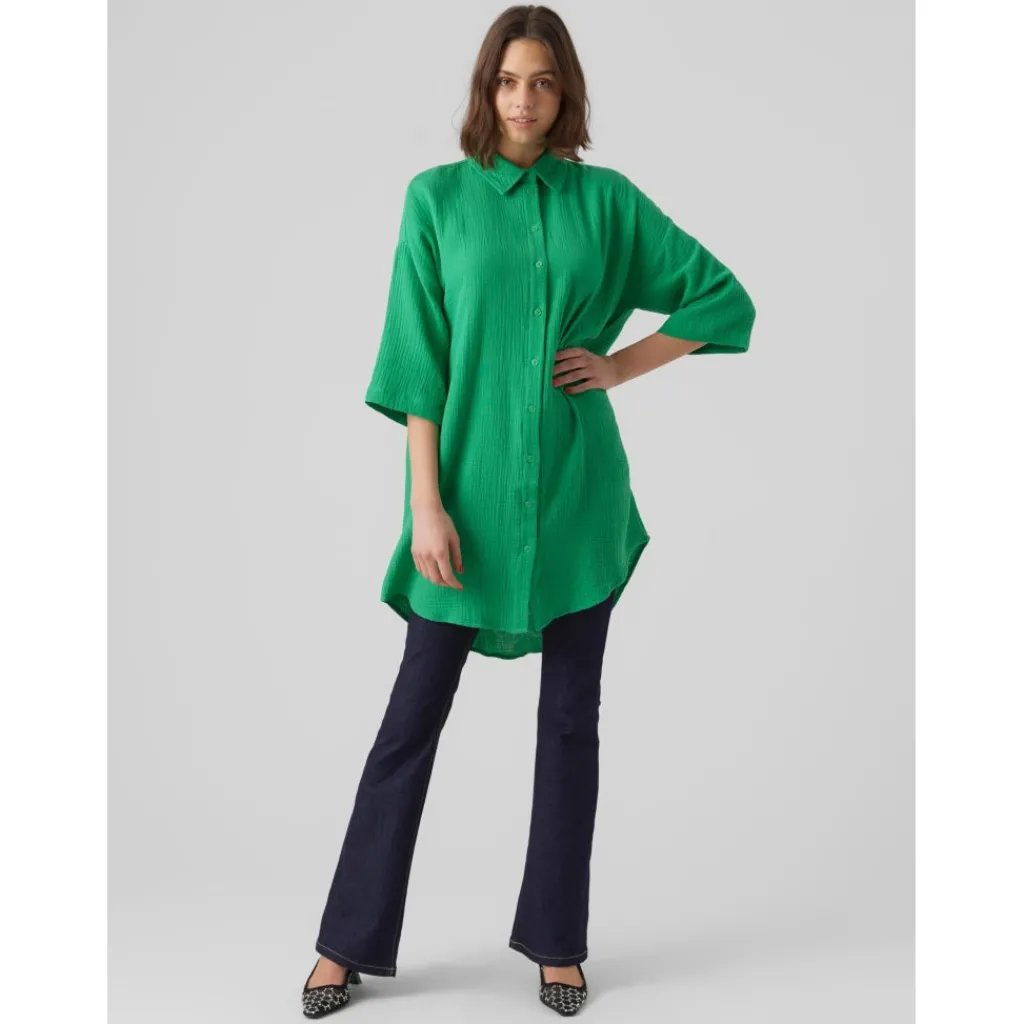 Denne oversize skjortekjole er både alsidig og stilfuld, og er et must-have i garderobeskabet. Brug den som den er, eller style den med et par jeans. Tilføj et bælte i taljen for at fremhæve din figur.