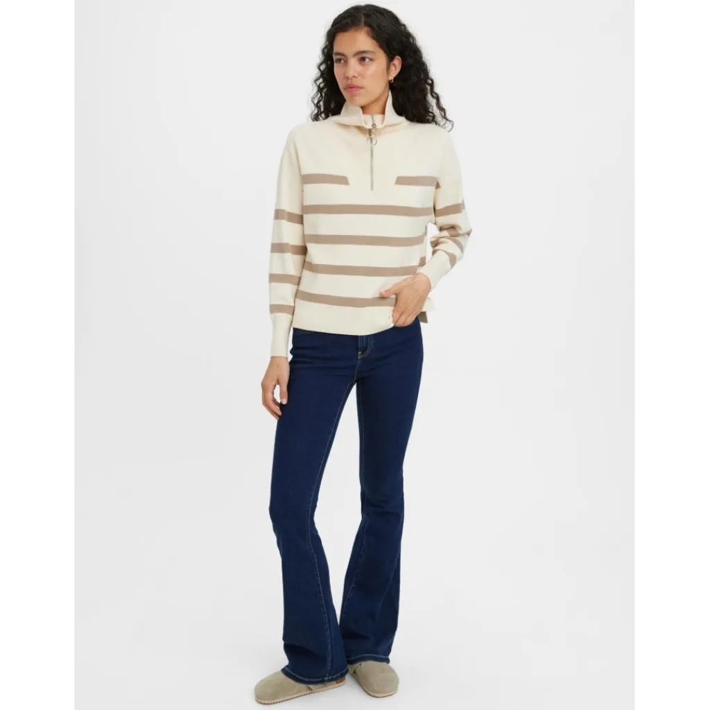 Strik pullover med høj hals, half-zip og dropped shoulders. Modellen er 175 cm høj og har en str. S på. Style denne smarte strik pullover med et par jeans og loafers for et casual hverdags look.