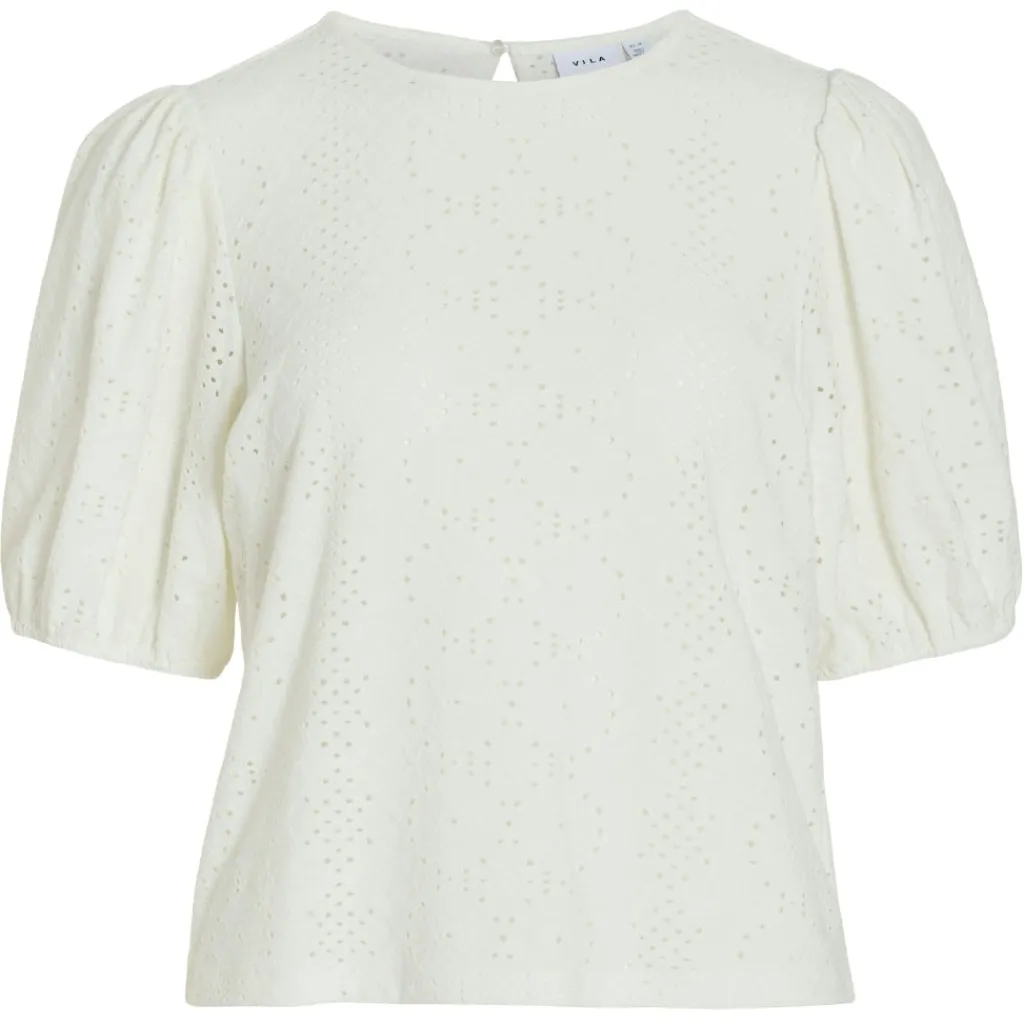 Feminin blondebluse fra Vila. Blusen har de smukkeste detaljer og er ideel både til hverdagsbrug og finere brug. Brug den både med jeans og nederdele alt efter anledningen.