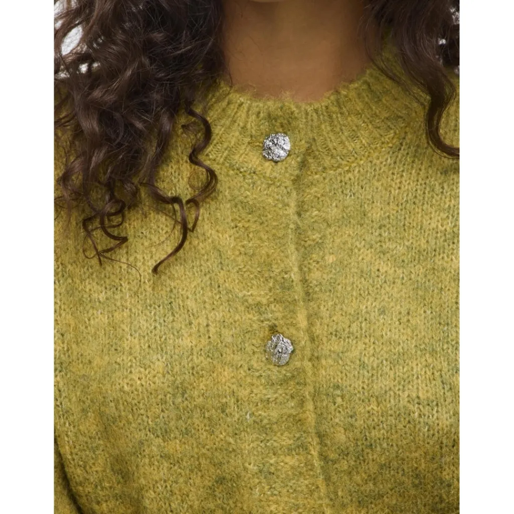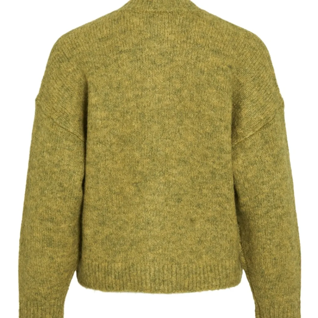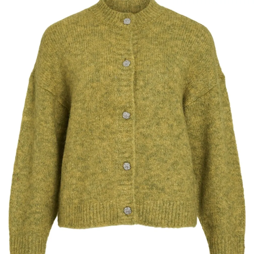 Strikcardigan fra VILA med rund hals og knaplukning. Passer til afslappede outfits og kan styles med jeans eller nederdele for et alsidigt look. Perfekt til vinterbrug.
