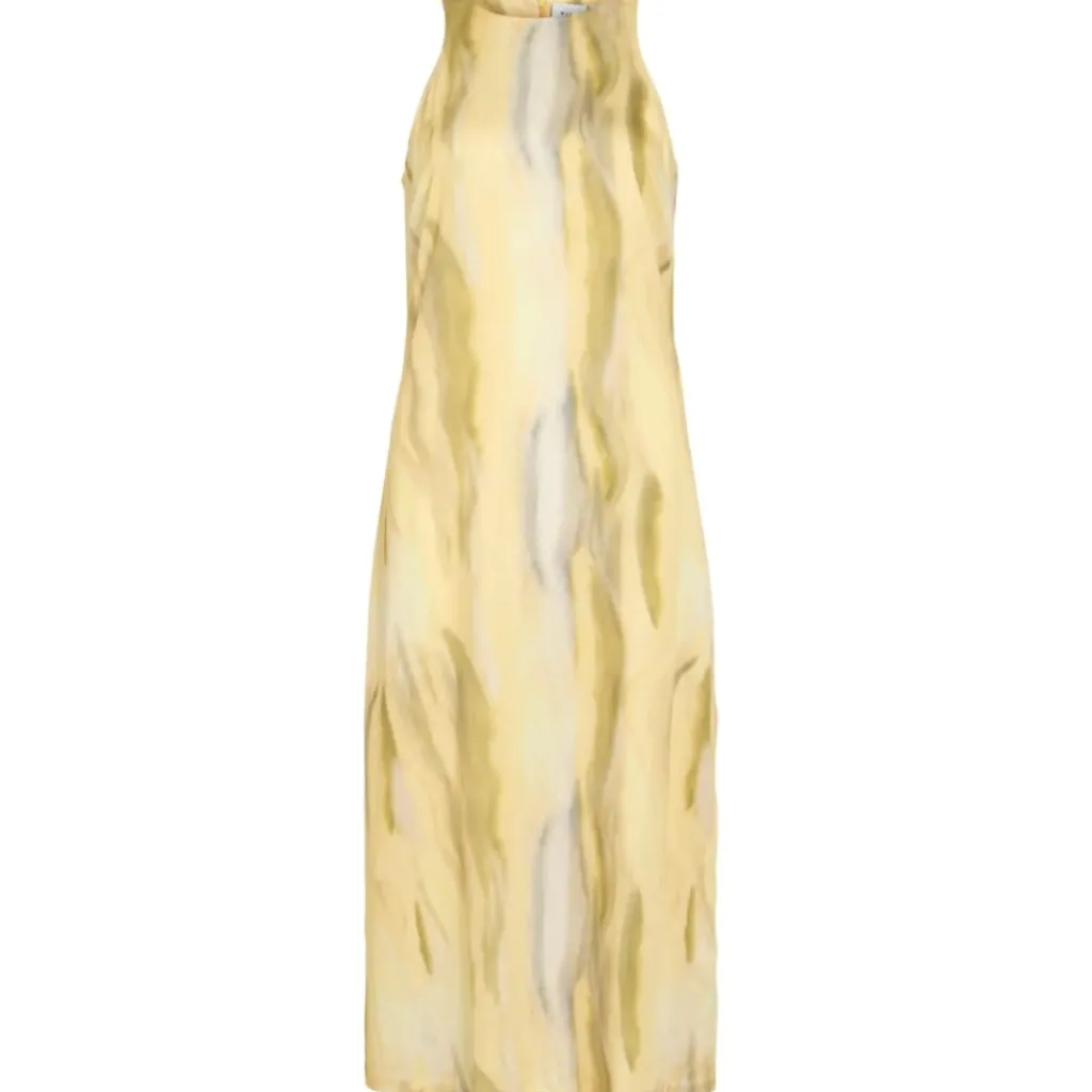 Den smukkeste gule kjole fra Vila. Høj, rund hals og falder flot. Style den til sommerens fest med et par stiletter eller ballerinaer.