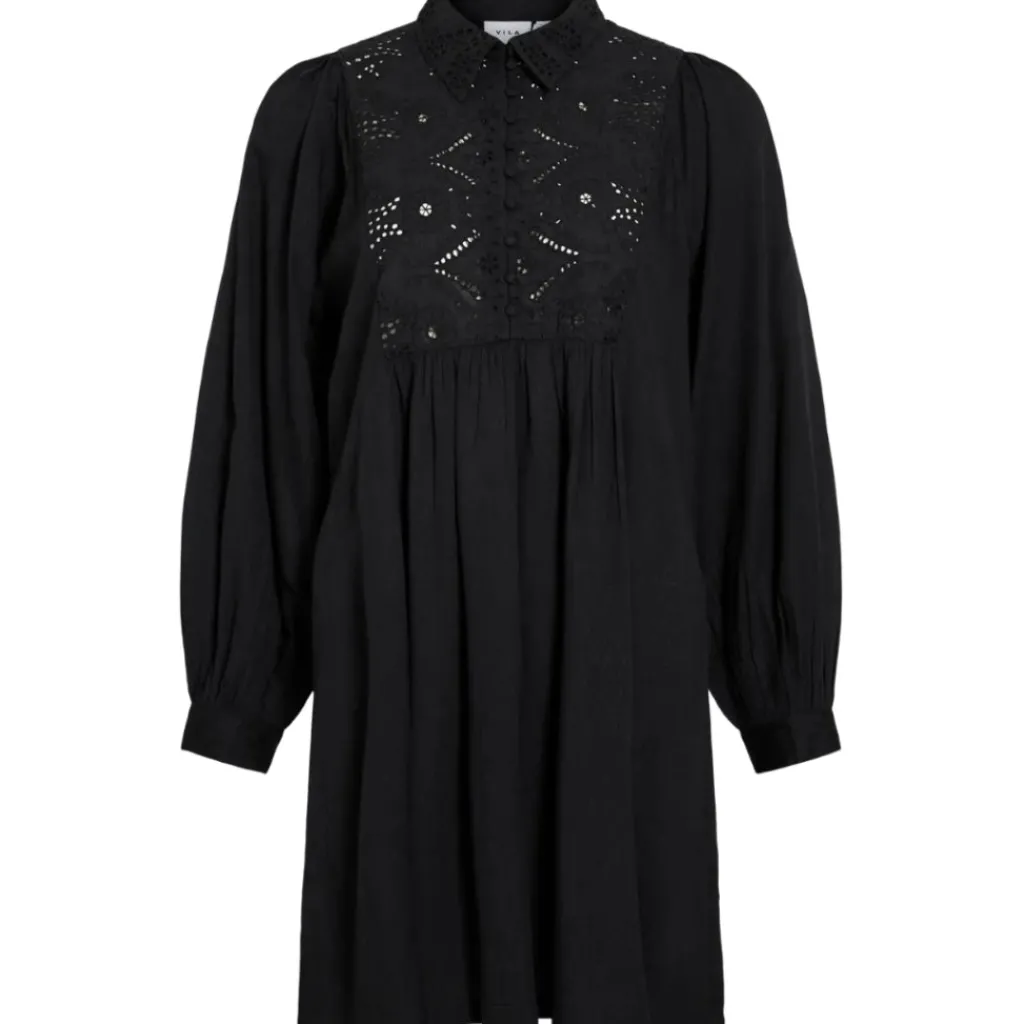 Kjole fra Vila, med fine blonde detaljer. Kan bruges både til hverdag og fest i alle årets sæsoner.