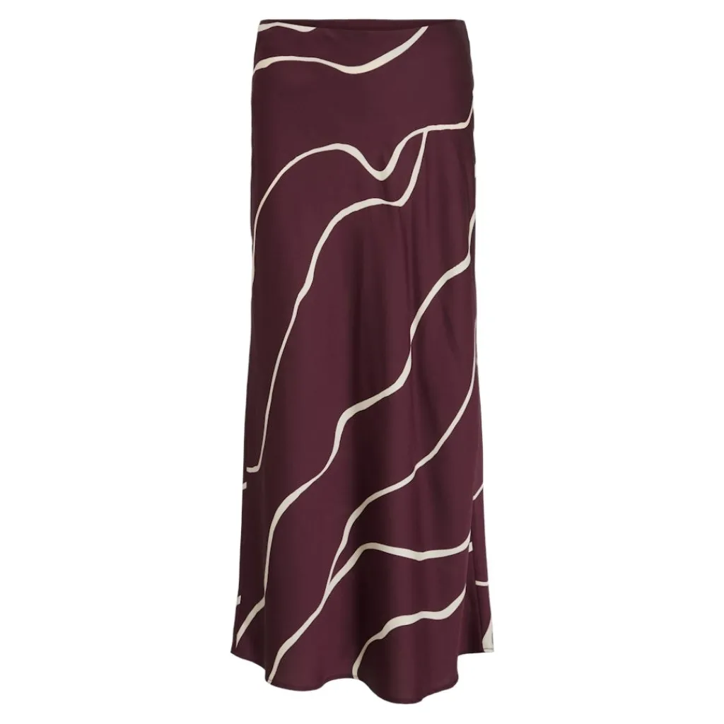 Smuk satinnederdel fra Vila. Super feminin og kan både bruges til toppe og skjorter alt efter looket du ønsker. Ideel til både hverdagsbrug- og finere brug.