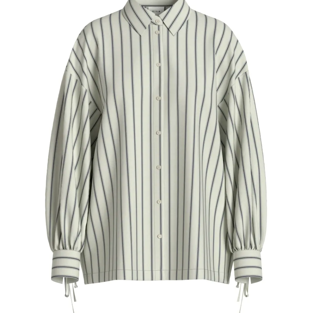 Sød, feminin skjorte med bindebånd ved håndleddet fra Vila. Skjorten er klassisk og tidløs og kan sammensættes med hvad end man har i klædeskabet. For et fint hverdagslook, sæt den sammen med et par jeans og sneakers.