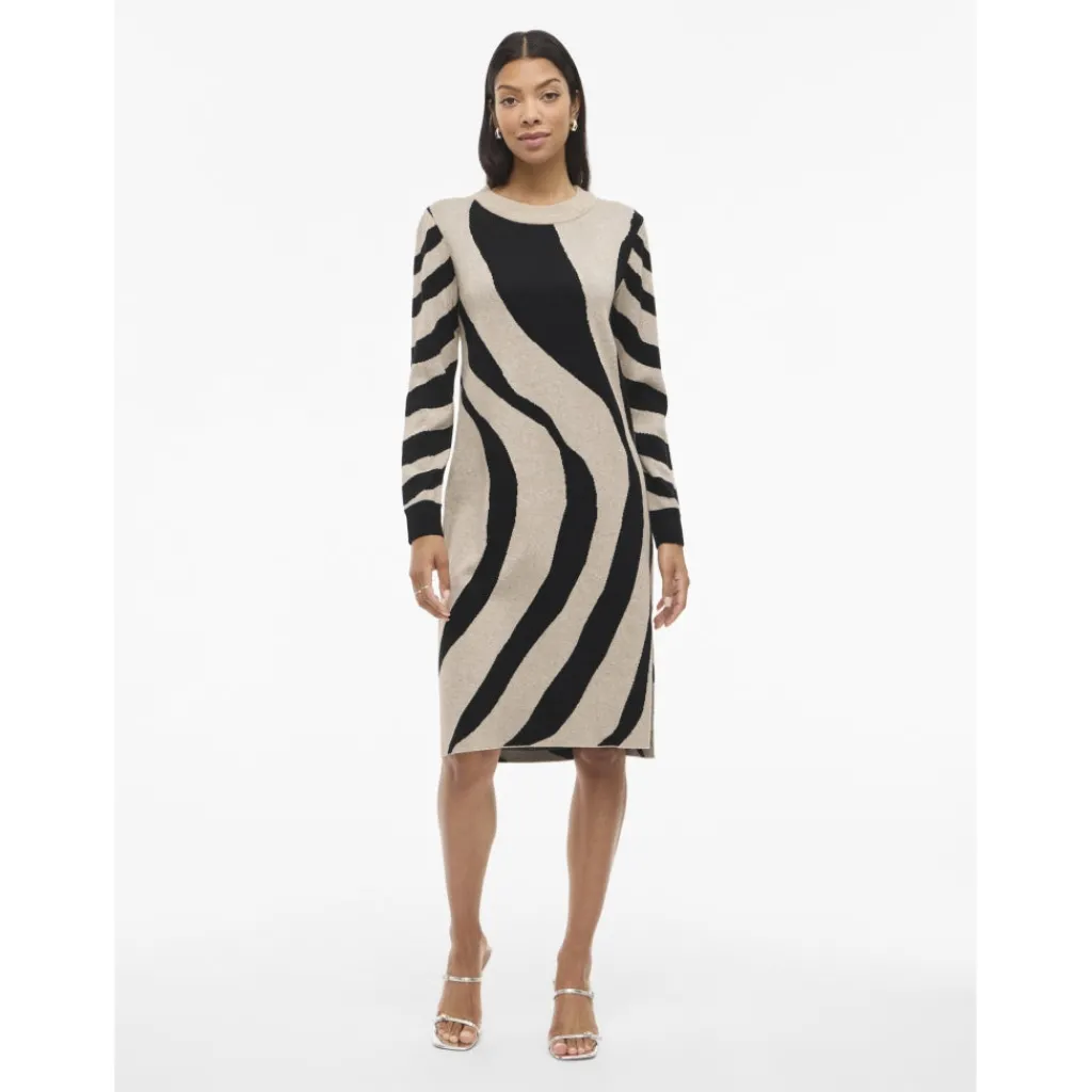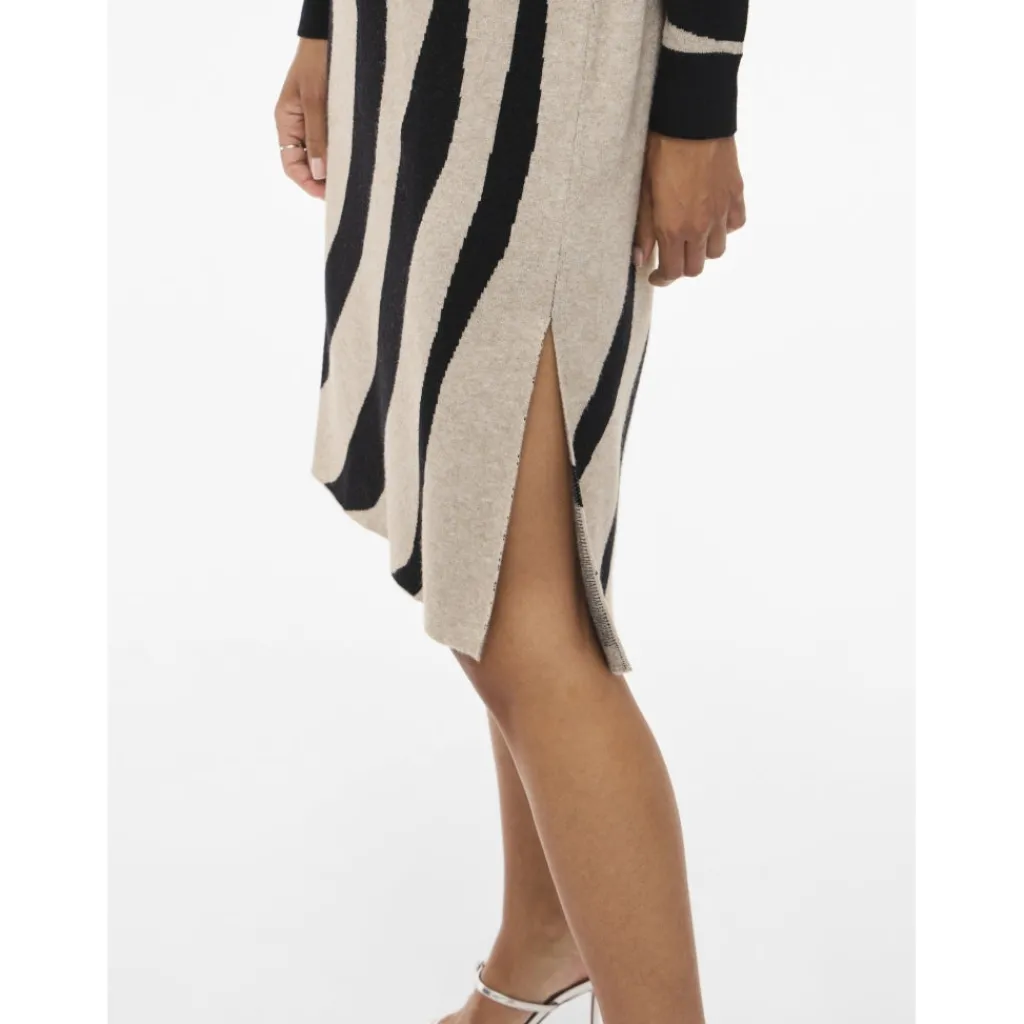 Smuk strik kjole fra VILA i et flot mønstret print. Kjolen er helt perfekt til den kolde tid med et par strømpebukser og støvler.