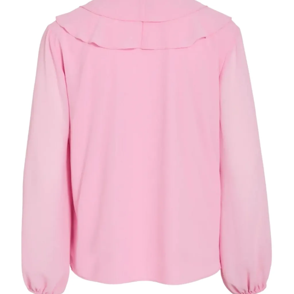 Smuk bluse fra Vila, med flæser og v-hals. Style med et par jeans eller habitbukser.