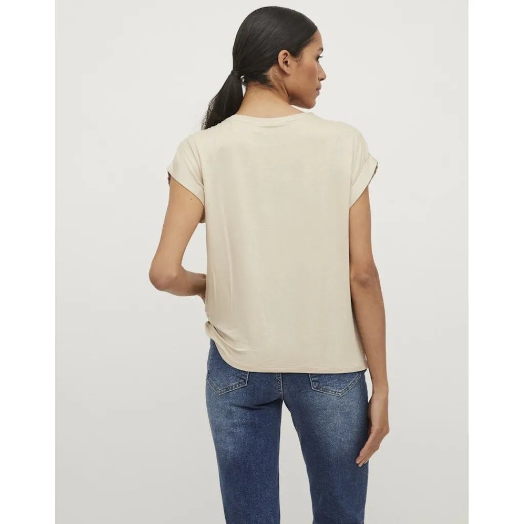 Basic t-shirt fra Vila i en lækker og blød kvalitet. T-shirten er super klassisk og alsidig, og det er en uundværlig style i garderoben efter vores mening. Ikke nok med at den er super fin er den også utrolig komfortabel at have på.